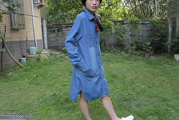 這件牛仔襯衫其實在官網的照片是當洋裝的,